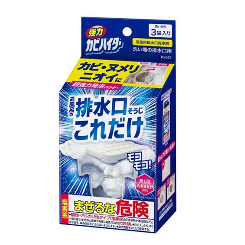 花王 強力カビハイター 排水口そうじこれだけ [掃除 洗剤 浴室 風呂 泡 カビ ヌメリ ニオイ 除菌] 3袋入り 爆買