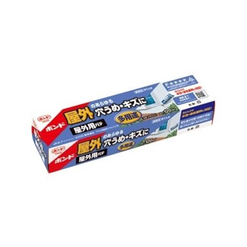 ボンド 屋外用パテ(アクリル樹脂系エマルジョン形充てん材) コニシ 120ml ●容量:120ml ●屋外(タイル、コンクリート、石材、陶磁器、木材、金属、プラスチック)の穴埋め、キズ補修に(※幅または深さが3mm以上の箇所に使用すると、乾燥後にヒビ割れ・凹みが目立ちます。3mm以上の充てんは作業を繰り返し行ってください)●ほとんどの水性・油性塗料に対応●乾燥後、水性・油性塗料の上塗りができる●硬化後は釘・木ネジの使用や切削・研摩が可能●乾燥後、ヒビ割れ・肉やせが少ない