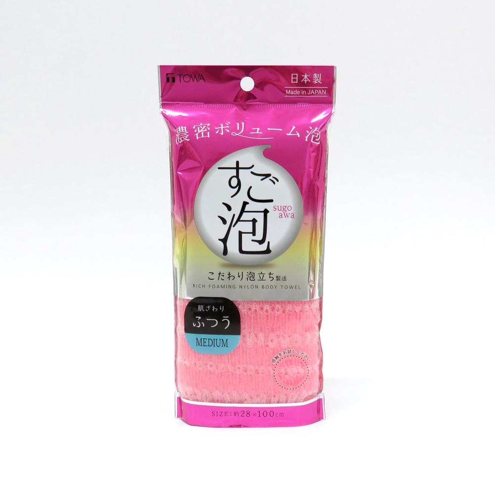 すご泡IV ナイロンタオル ふつう [ボディタオル 体洗い 垢すり 泡立つ] 東和産業 34706 ピンク ●商品サイズ(約):幅100×奥行28cm ●適度なかたさですっきり洗える