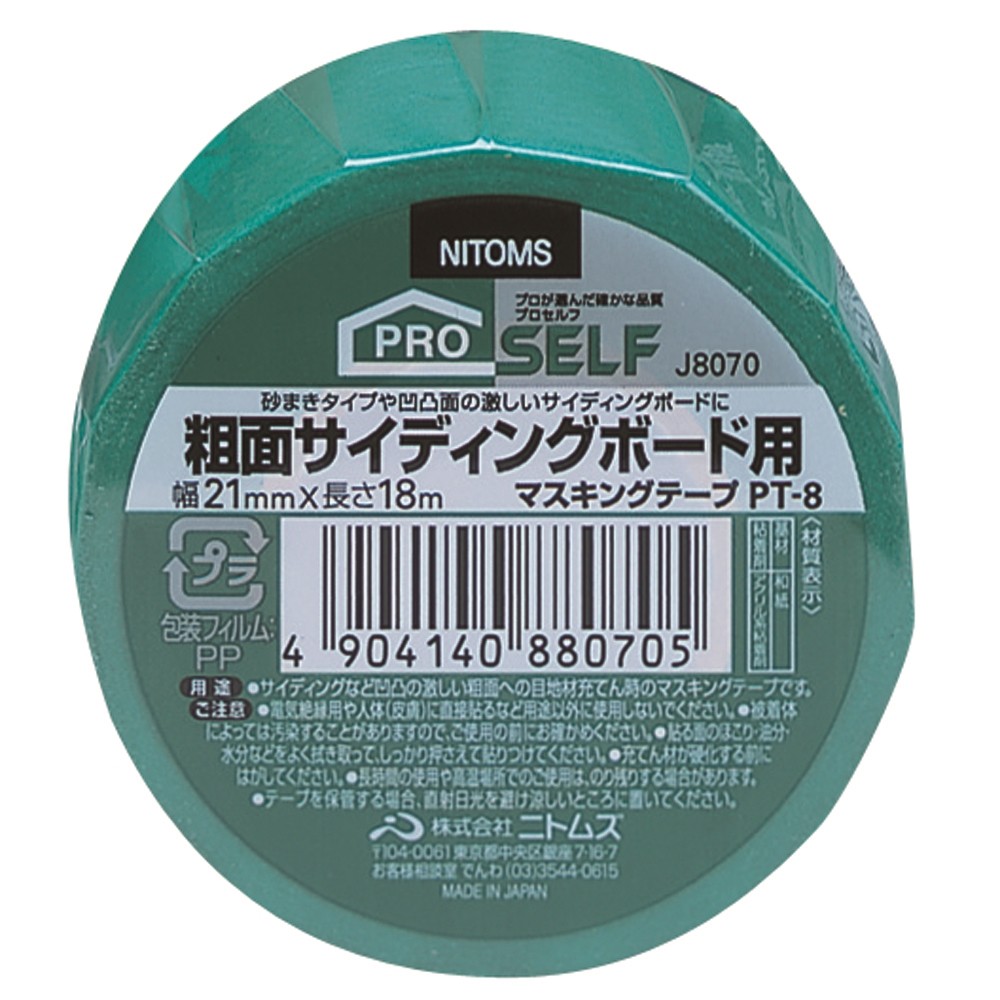 粗面サイディングボード用マスキングテープ PT-8 21mm×18m 【在庫処分】ニトムズ J8070 ● ● ●特殊基材を採用し、直線・曲線にも使用でき凹凸面にも良くなじむ