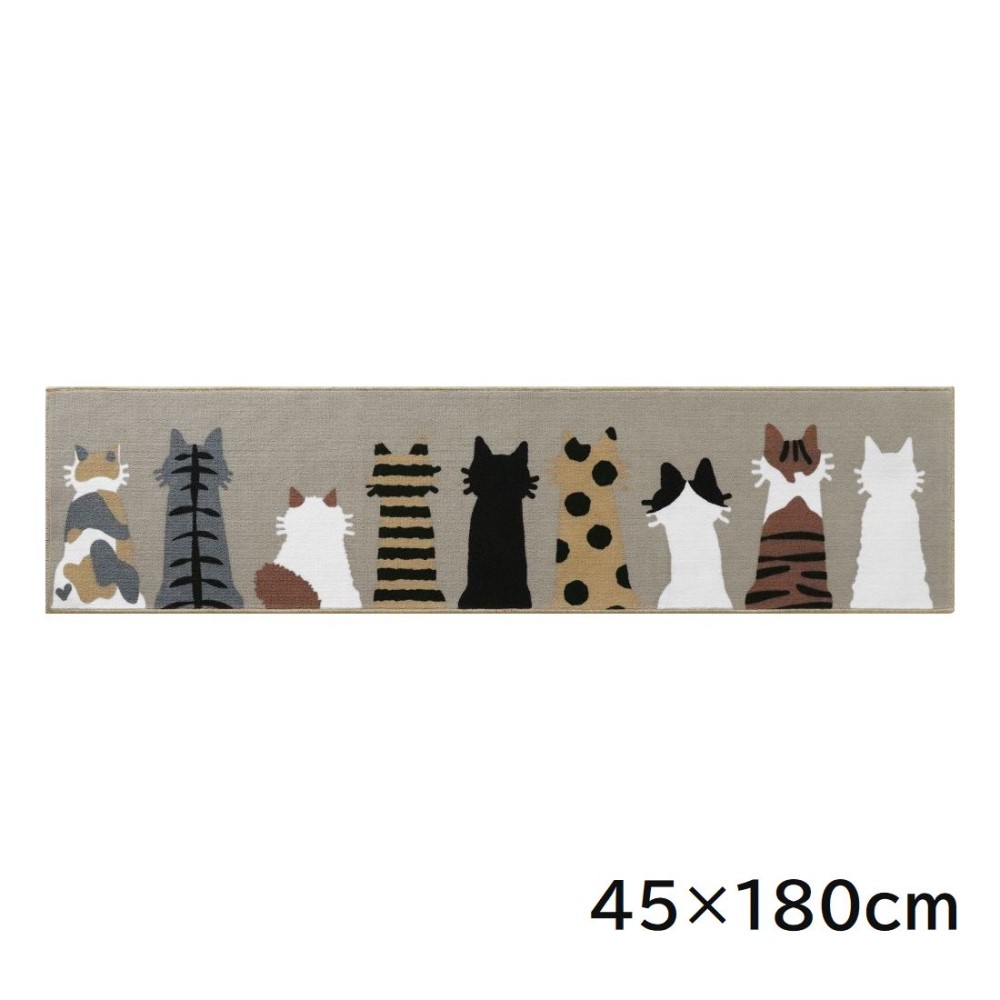 オカトー mysa(ミーサ) キッチンマット 45×180cm [ラグ マット 台所 猫 ネコ 洗える 滑り止め 床暖OK 足元] キャットグレージュ