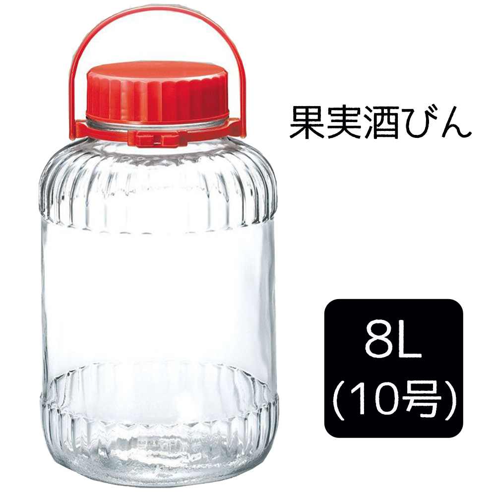 ●便利な機能で使いやすいガラス製の果実酒びん●8リットル(10号)サイズ●裾部の丸みがコーナーや底面への衝撃を和らげる●注ぎ口がついた内蓋が付き●持ち運びに便利な吊手付き●内蓋が取り外しやすいくぼみがあります●昭和レトロなデザインがかわいい●「長期保存果実酒びん」品質規格に合格●長期保存に適した構造と機能を兼ね備えている●シオリには手作りレシピが記載●耐熱ガラスではないため、熱湯消毒・煮沸消毒不可※ガラスびんはやわらかいスポンジを使い、ぬるま湯で必ず洗ってください。
