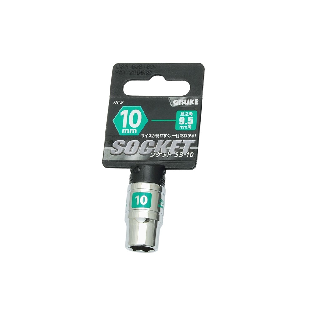 ソケット 9.5角 GISUKE 10mm ●サイズが見やすく一目でわかる ●本体材質:クロームバナジウム鋼