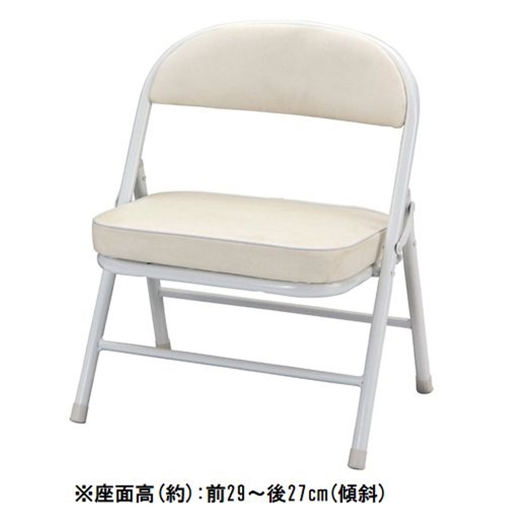 ●座面高(約):前29~後27cm(傾斜) ●重量:約2.5kg ●座面が低めの折り畳みイスです
