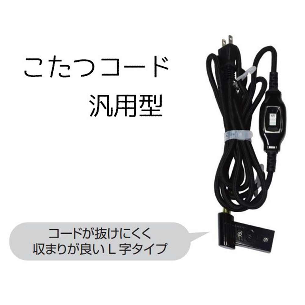 ●差し込み口が2つ口の交換用こたつコードです●コードの中間にオンオフのスイッチがある「中間スイッチ」●差し込み口に2本のピン(穴)●コードが抜けにくく収まりが良いL字タイプ