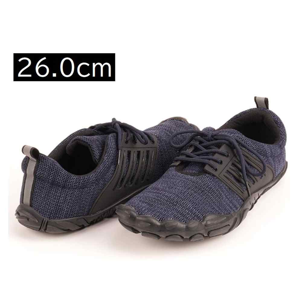 ※リニューアル等によりパッケージ・デザイン等が変更となる場合がございます。 6411 GILIO ベアフットシューズ ネイビー 26.0cm [作業靴 ワークシューズ 軽作業] カジメイク ●サイズ(約):26.0cm ●ニット素材で通気性抜群な幅広で指先を締め付けない5本指風シューズです