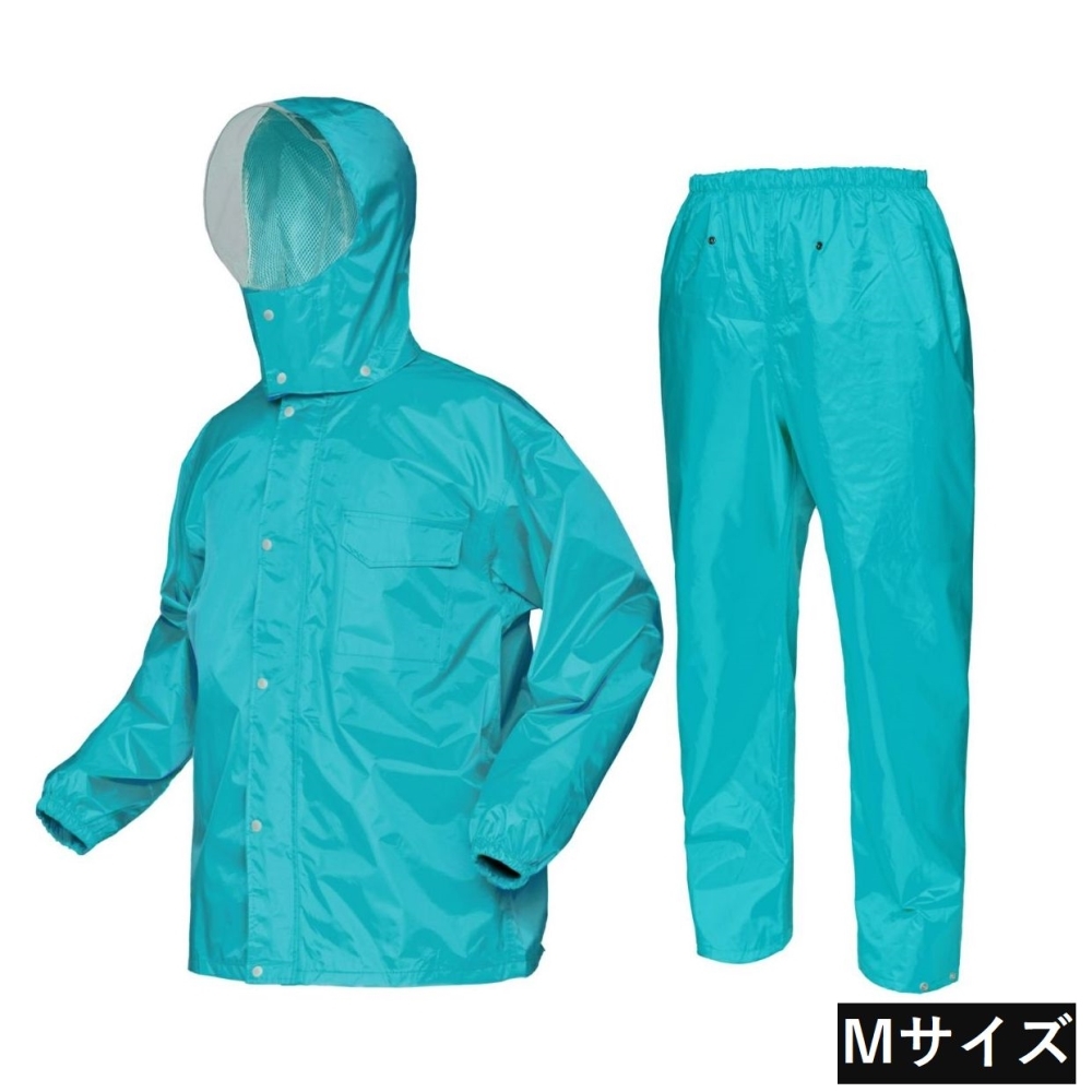 ディフェンド レインスーツ Mサイズ [合羽 カッパ レインコート 防水 雨具 作業着 通学 メンズ レディース 男女兼用 上下セット] カジメイク ターコイズ 3293 ●適応身長:160〜170cm