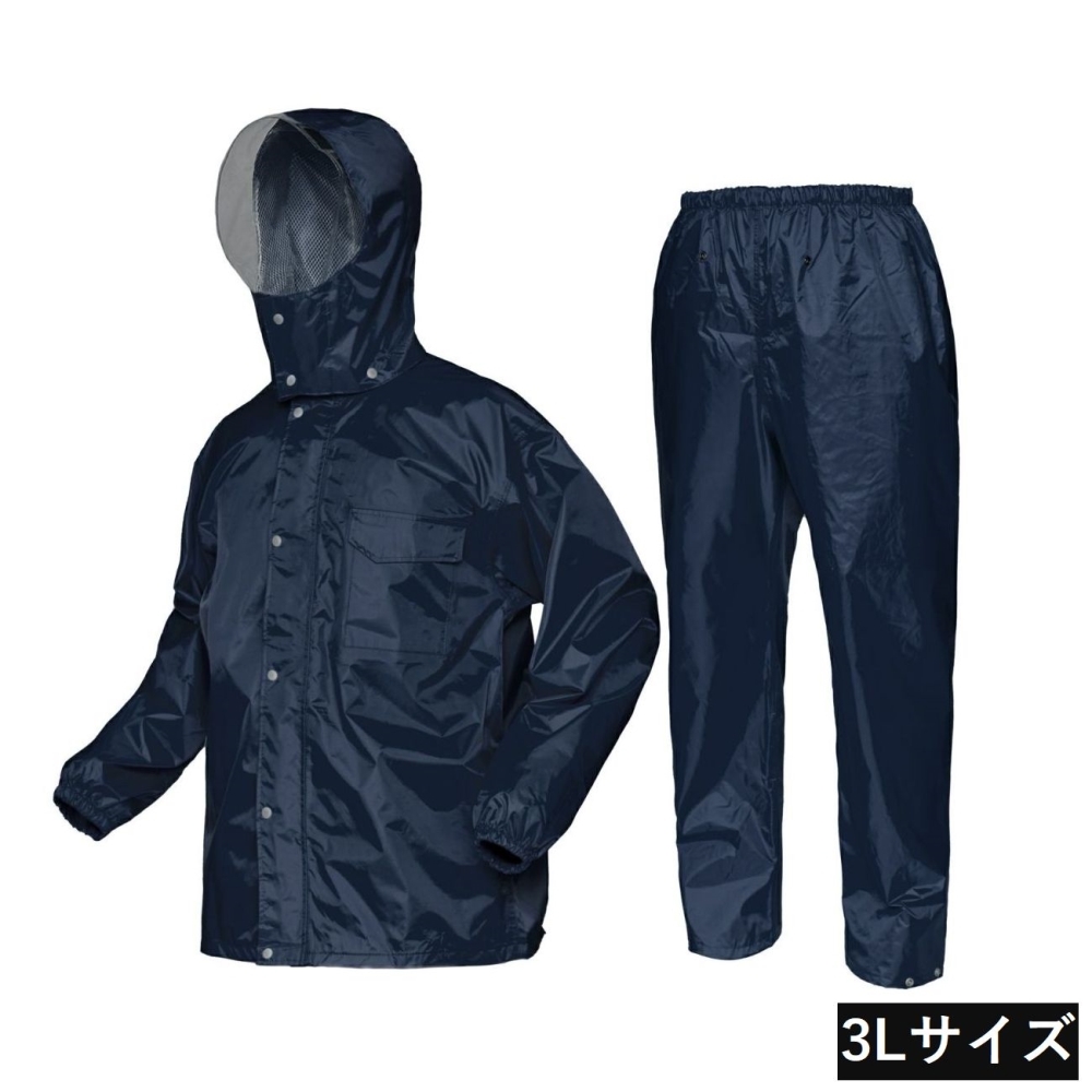 ディフェンド レインスーツ 3Lサイズ [合羽 カッパ レインコート 防水 雨具 作業着 通学 メンズ レディース 男女兼用 上下セット] カジメイク ネイビー 3293 ●適応身長:175〜185cm
