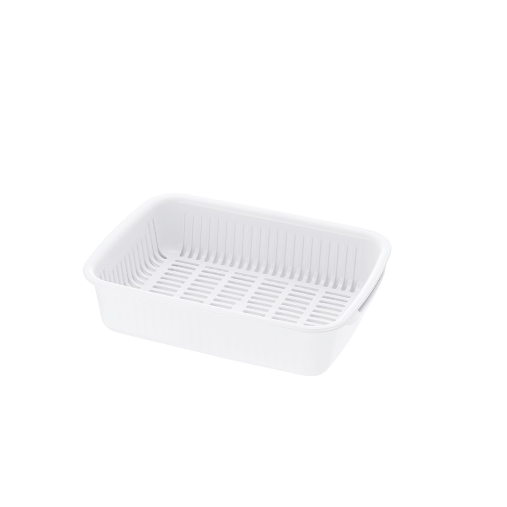 シェリー 水切りバット L リッチェル ホワイト(W) ●サイズ(約):幅35×奥行26×高さ9.2cm ●容量:4.5L ●シンプルな水切りバスケット