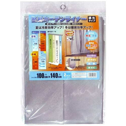 明和グラビア 断熱カーテンライナー 遮光タイプ(GY) グレー [窓 抗菌 防カビ 日焼け防止 省エネ カーテンレール] 100×140cm 2枚入り
