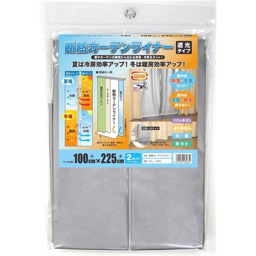断熱カーテンライナー 遮光タイプ(GY) グレー [窓 抗菌 防カビ 日焼け防止 省エネ カーテンレール] 明和グラビア 100×225cm 2枚入り ●サイズ(約):巾100×丈225cm ●2枚入り(Sカン14個入) ●一年中使用できるエコ商品