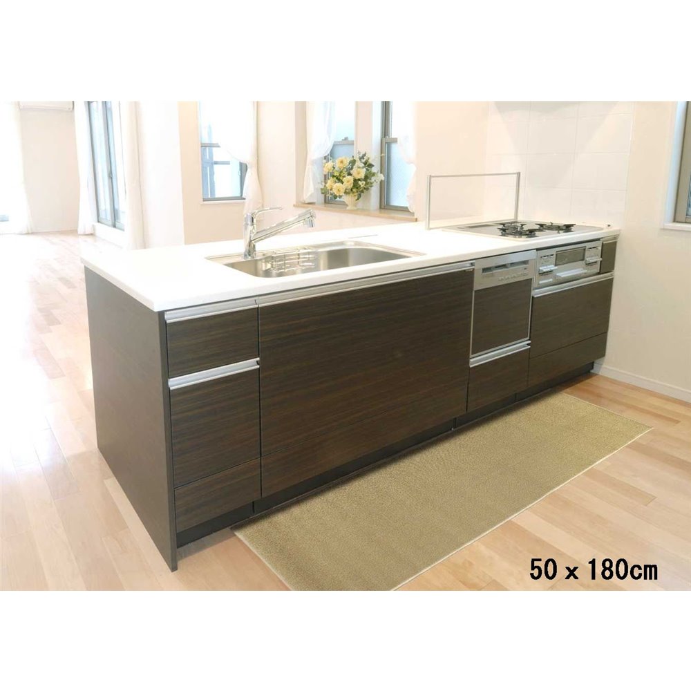 ※モニターにより、色の見え方が実際の商品と異なる場合ございます。 キッチンマット ベージュ 50x180cm [インテリア リビング 床 廊下 フローリング キズ防止] 明和グラビア SO-50 BE ●商品サイズ(約):50x180cm ●1枚 ●裏面滑り止め