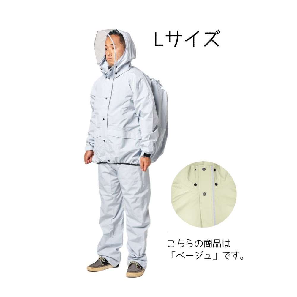SS-78 ストレッチレインスーツ ベージュ Lサイズ [レインウェア 上下セット ストレッチ 学生 男性用 リュック対応] コヤナギ ●胸囲:93〜99cm