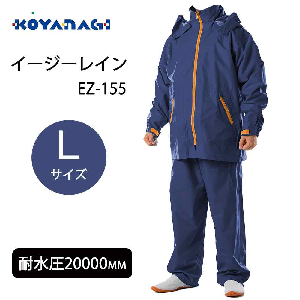 コヤナギ イージーレイン Lサイズ ネイビー [レインウェア レインスーツ 上下セット フード付き 防水 撥水 耐水圧20000mm] EZ-155