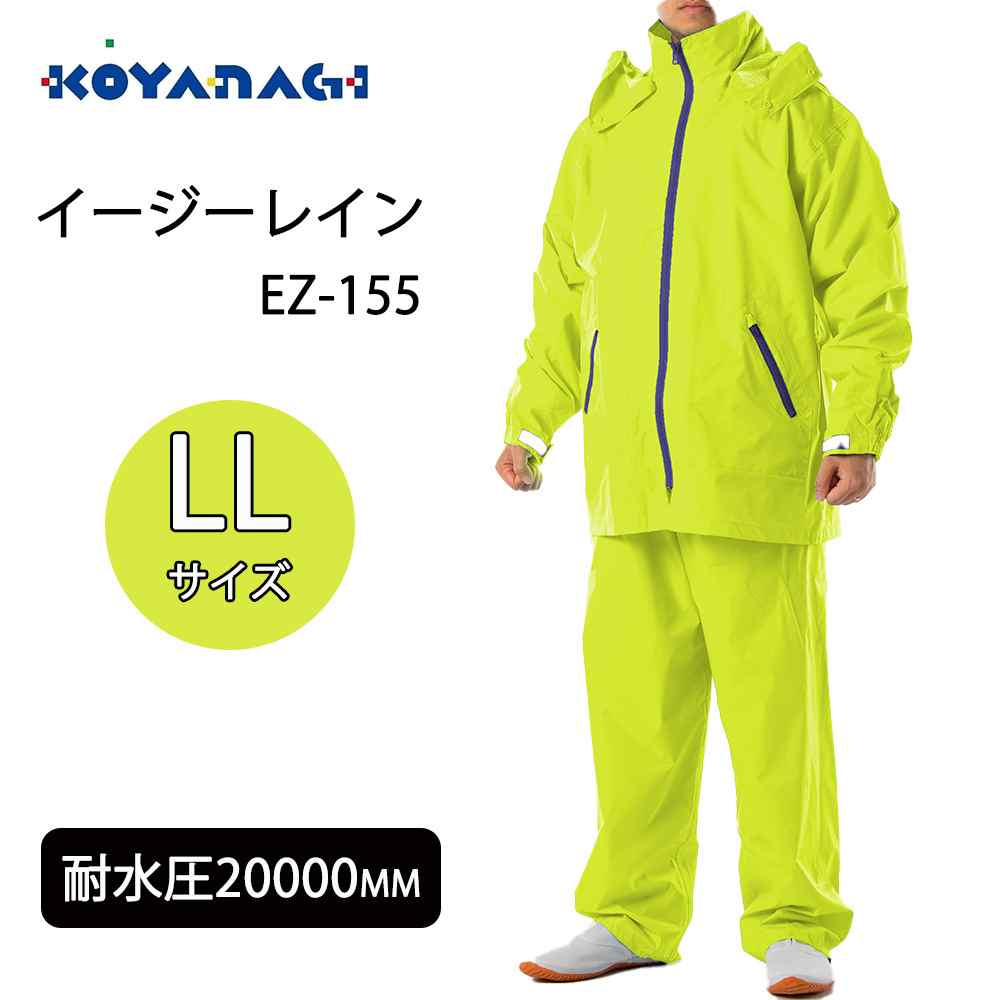 コヤナギ イージーレイン LLサイズ 蛍光イエロー [レインウェア レインスーツ 上下セット フード付き 防水 撥水 耐水圧20000mm] EZ-155