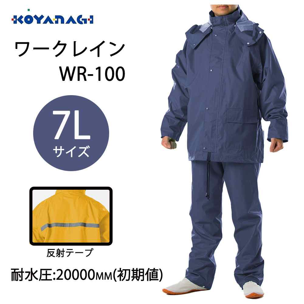 コヤナギ ワークレイン 7Lサイズ ネイビー [レインウェア レインスーツ 上下セット フード付き 防水 撥水 耐水圧20000mm] WR-100
