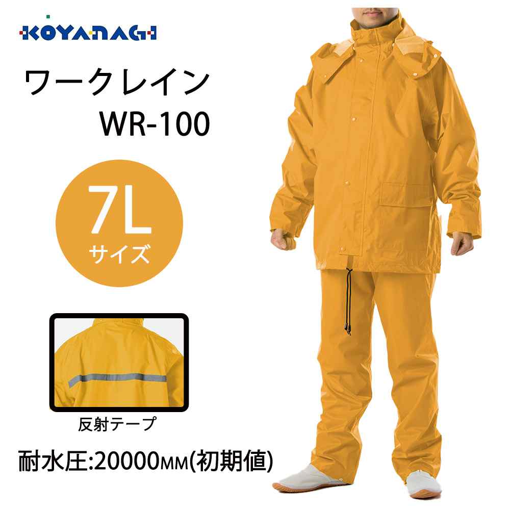 ※リニューアル等によりパッケージ・デザイン等が変更となる場合がございます。 ワークレイン 7Lサイズ マスタード [レインウェア レインスーツ 上下セット フード付き 防水 撥水 耐水圧20000mm] コヤナギ WR-100 ●適応身長:180〜190cm