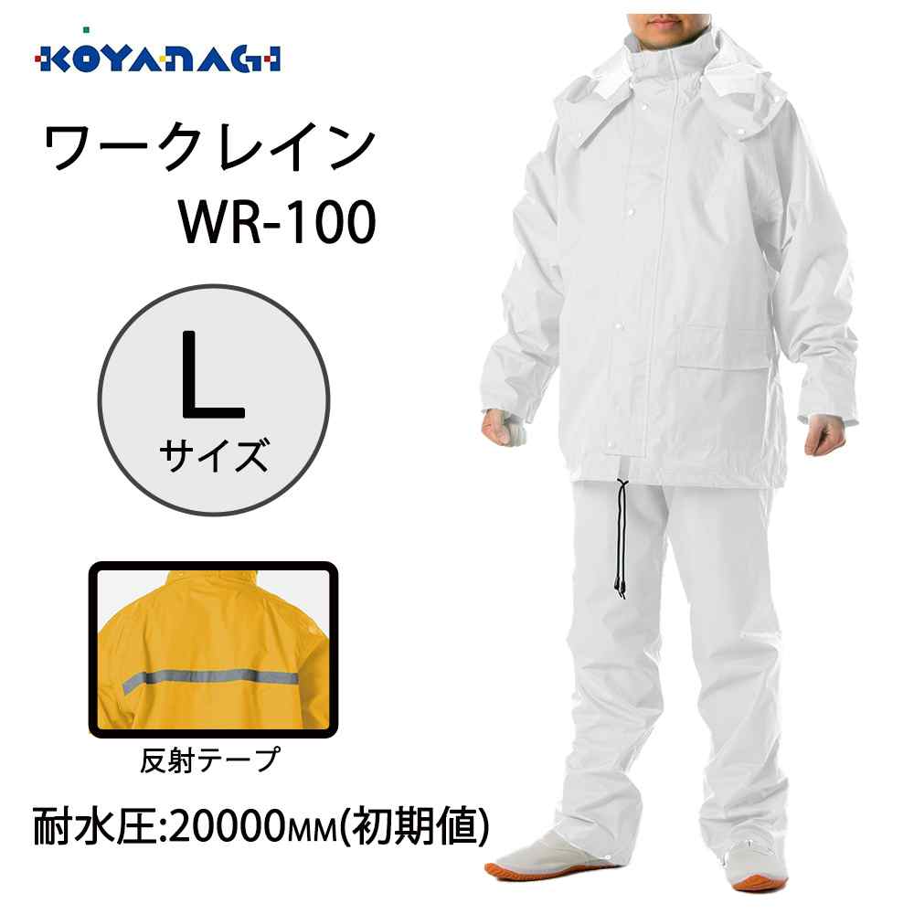 コヤナギ ワークレイン Lサイズ ホワイト [レインウェア レインスーツ 上下セット フード付き 防水 撥水 耐水圧20000mm] WR-100