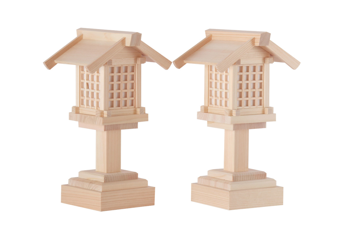 桧でできた、灯篭。木のぬくもり、和のシルエット。工房手作りの逸品。柏手を二回打てば、ゆらゆらと、優しい灯火が15秒間灯ります。神様に願いと感謝を。心温まる神具を神棚に添えて。