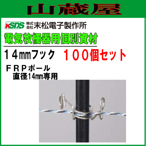 電気柵用資材(部品) 電気柵用 FRPポール用 14mmフック (100個入り) 電柵/[末松電子]