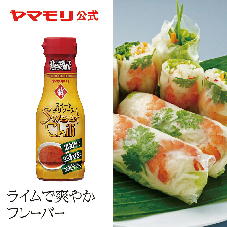 甘みの中に、ライム果汁の爽やかな風味と、ローストガーリックの旨み、唐辛子の辛味が加わり、さらりとした使い心地が特長の当社オリジナルレシピのスイートチリソースです。 定番の生春巻きや唐揚げはもちろん、エビチリや、オムレツ、蒸し野菜などにもおいしく使いいただけます。 お好みの量を押して注げるPETボトル入り・液切れのよい特殊キャップを採用し、これまでにない使いやすさを実現しました。