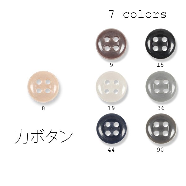 col.8 beige col.9 braun col.15 black col.19 light gray col.36 gray col.44 navy col.90 dark gray ボタン付け糸も取り揃えております。