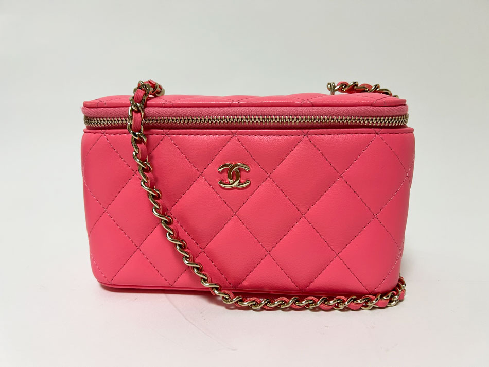 送料無料 CHANEL シャネル バニティ チェーンショルダーバッグ マトラッセ ラムスキン ピンク 32番台 美品
