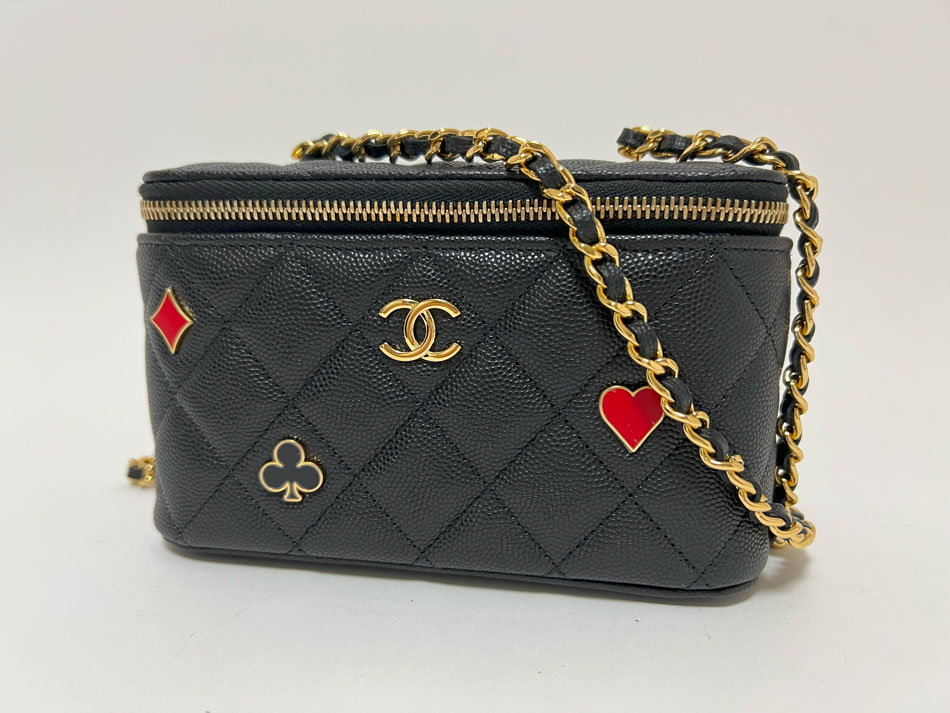 CHANEL シャネル トランプ バニティ チェーンショルダーバッグ マトラッセ キャビアスキン ブラック ランダム AP3079 超美品