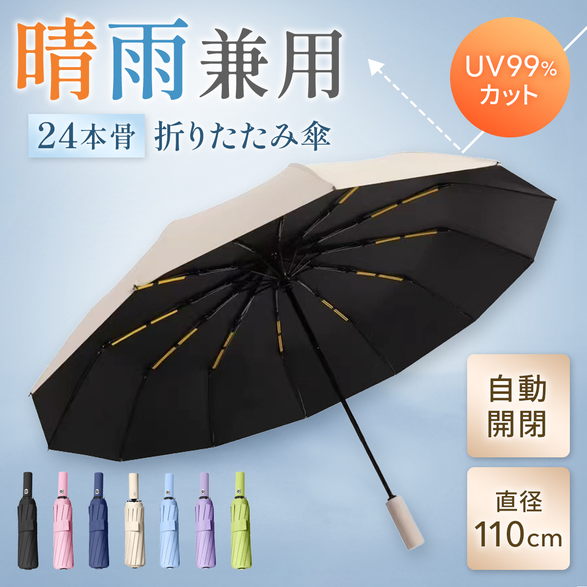 【24本骨日傘】24本の傘で、コンパクトで収納しやすく、自動開閉で使いやすいです。 毎日の通勤などに持ち歩いても、負担をかけずにいつでも簡単に紫外線対策ができます。