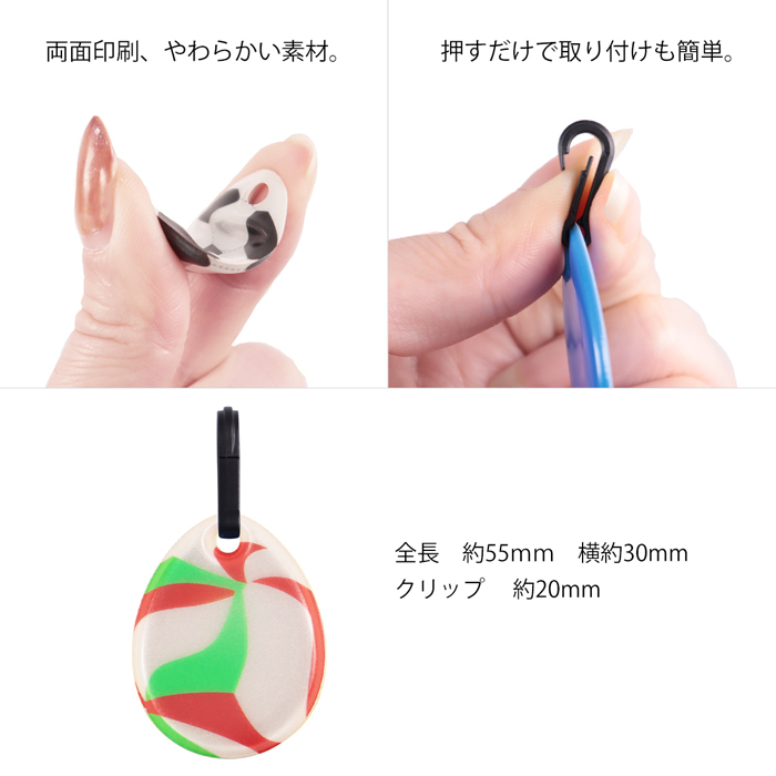お子様のアウターのジップや、リュックのジップなどにチャーム感覚で簡単に装着できます。邪魔にならない大きさで両面リフレクター素材なので動きまわってもしっかりと反射します。