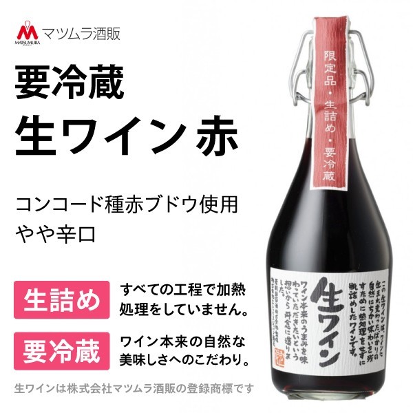限定流通 生ワイン 赤 500ml 1本 クール便 要冷蔵 マツムラ酒販 山梨 富士山 お土産 ワイン県 デザートワイン 甘口 日本 非加熱 無添加 低アルコール BBQ