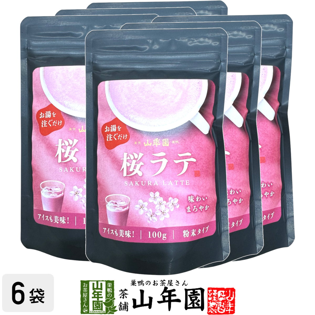 お湯を注ぐだけで簡単に作れる山年園オリジナルの桜ラテ!