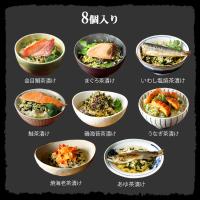 | 内容量 | 【各1袋づつ】 金目鯛茶漬け、まぐろ茶漬け、鰻茶漬け、鮭茶漬け、いわしの塩焼茶漬け、磯海苔茶漬け、焼海老茶漬け、鮎茶漬け 茶碗 1個 |
