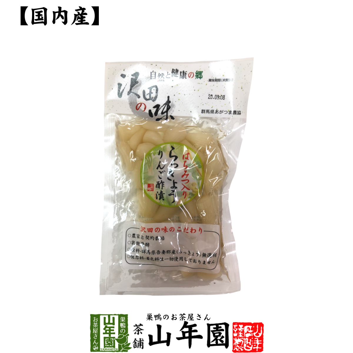 契約農家が栽培した国産の原材料を使用。群馬県産のらっきょうを同じく群馬県産のはちみつを加えたリンゴ酢に漬けました。沢田の自然と実直な農家の人たちが作り上げた、素朴で懐かしい味わい。リンゴ酢でまろやかさに仕上がったらっきょう漬けは、炊き立ての白飯のお供やカレー付け合わせだけでなく、毎日の食卓におすすめです。