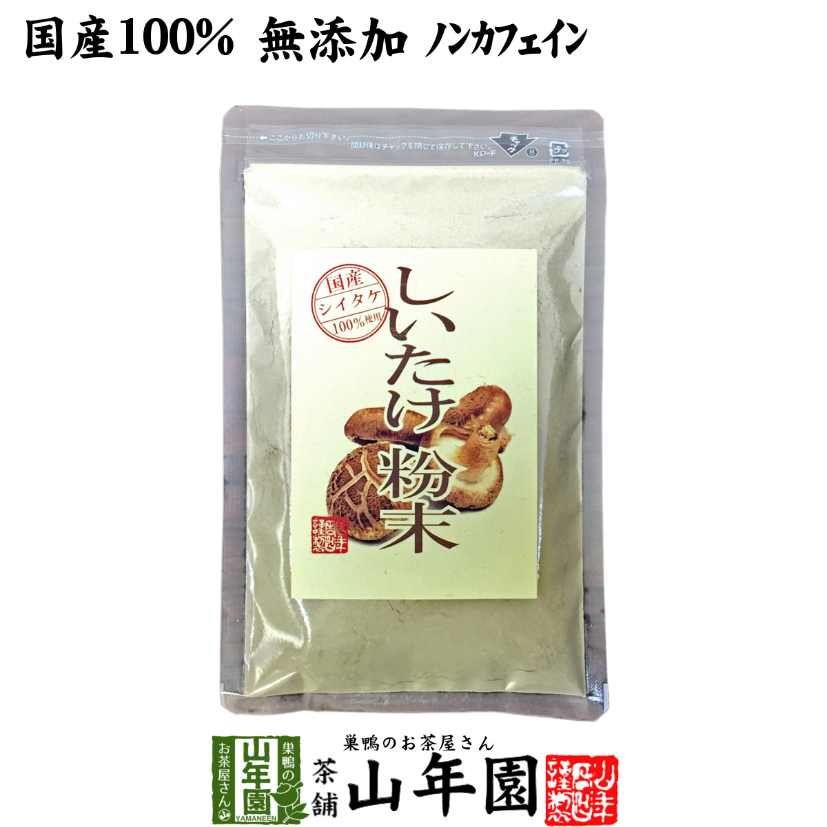 巣鴨のお茶屋さん山年園の【椎茸粉末】は、安心安全に飲めるように、3つの点にこだわりました。国産100%で日本国内で栽培している生産者の方々が、厳選した明確な原料を使用しています。 無添加100%にこだわり、安心安全なしいたけ粉末をお届け致します。お子様や妊婦の方も安心して飲めるように、ノンカフェインにこだわりました。当店のしいたけ粉末は山年園限定です。老舗のお茶屋がこだわり抜いた【しいたけ粉末】を是非ご賞味ください。