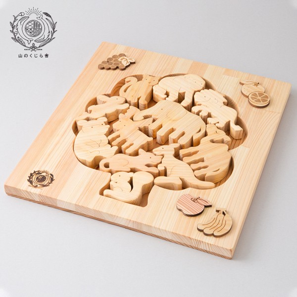 ゾウやライオン、カンガルーやクマなど、ツリーの中は11種類の可愛い動物たちでいっぱい。動物たちの愛らしい表情に、子供たちも思わずニコニコ。つみ木やパズル、動物ごっこなどにも、子供たちの自由な発想で遊ぶことができます。それぞれの動物たちは角を丸くし大きく、お子さまの小さな手でもしっかり持てるサイズに作っています。