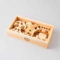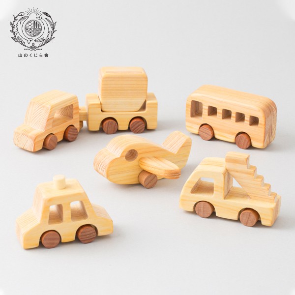 飛行機と、飛行場ではたらく車が勢揃い。飛行機1機と車4台が木箱入りのセットになりました。