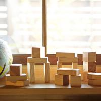 つみ木の形はシンプルに、立方体と直方体の2種類。積んだり、並べたり、叩いて音を出してみたり。 また、形を思い描いて測ったり、最後は壊してみたりと、形の基礎を覚えながら様々なイメージを膨らませることができます。