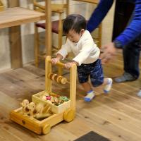 赤ちゃんがつかまって前に進むと、3羽のヒヨコがピョコピョコと動き出し、カタカタカタと心地よい木の音を奏でます。そんな楽しい光景に「あんよは楽しい」という気持ちが芽生え、遊びのなかで一人立ちや一人歩きに必要な【筋力】【バランス感覚】を身につけることができます。
