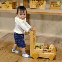 素材はすべて高知県産。メインには上質なヒノキを使い、タイヤとヒヨコの体の一部には高知県産広葉樹を使っています。赤ちゃんの柔らかな肌を傷つけないよう、細部までとことん磨き上げ、スベスベの木肌にしました。また、汚れ防止として赤ちゃんが触れても舐めても安全な亜麻仁オイルを塗っています。