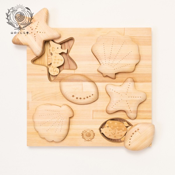 セット内容:貝やヒトデのフタピース/海の生きものピース6種類/パズル台1個