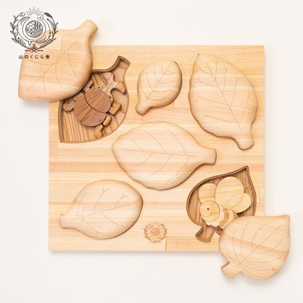 セット内容:葉っぱのフタピース/里山の昆虫ピース6種類/パズル台1個