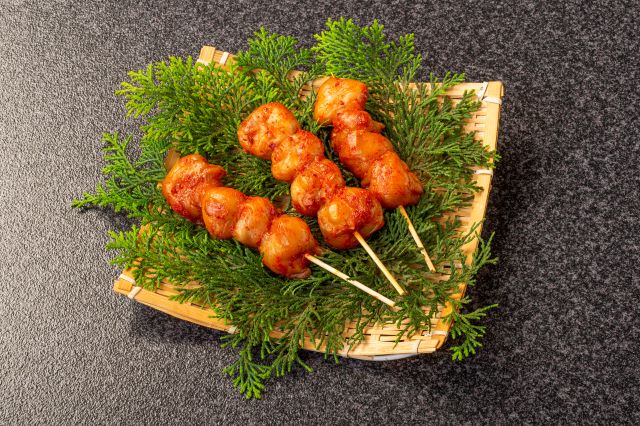 赤いかの口を特製たれに漬け込んで串に刺しました。