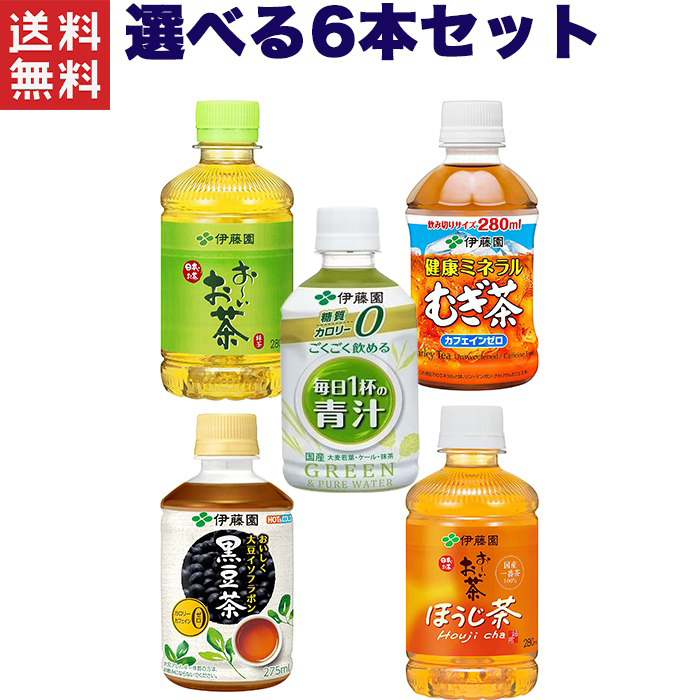 伊藤園 選べるペットボトル 280ml お〜いお茶緑茶・健康ミネラル麦茶・黒豆茶・ほうじ茶・青汁・ 6本セット 送料無料