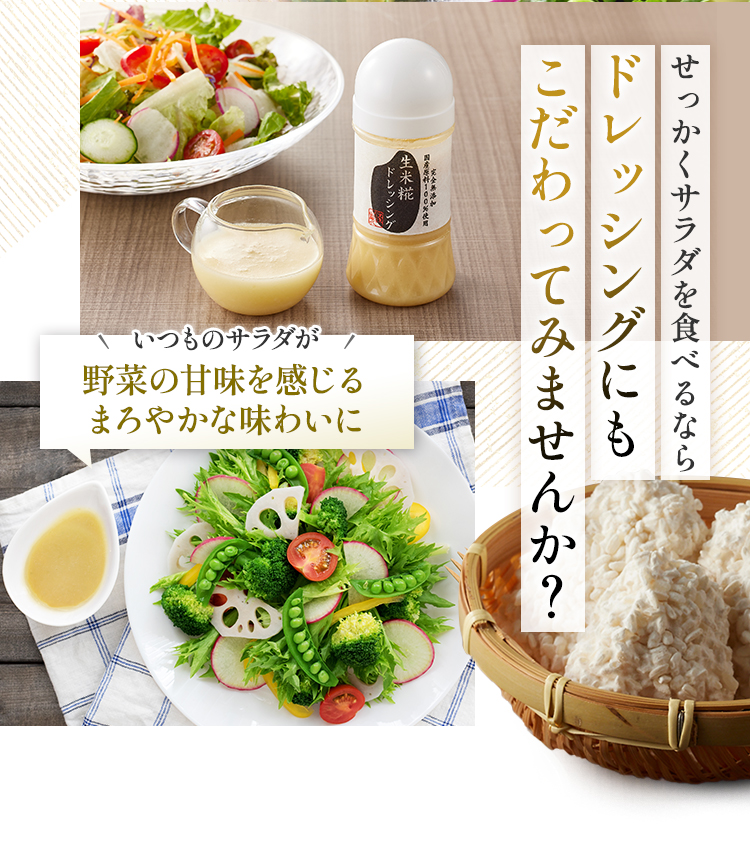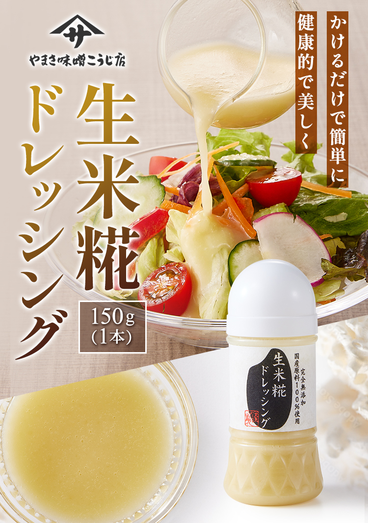 生米糀ドレッシング 完全無添加 化学調味料不使用 国産原料100% ノンアルコール さっぱり こめ油 リンゴ酢 生糀 生甘酒 塩糀 塩麹 サラダ しゃぶしゃぶ
