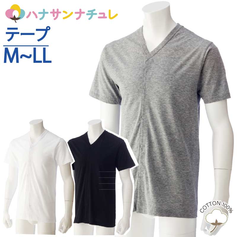 ワンタッチ肌着 インナー シャツ インナーシャツ 下着 前開き 介護 マジックテープ式 半袖 Vネック 綿100% 春夏 介護下着 介護シャツ 介護肌着 介護用下着 介護用シャツ 介護用肌着 介護用衣料 高齢者 男性 メンズ 紳士 男性用 メンズ用 紳士用 シニア