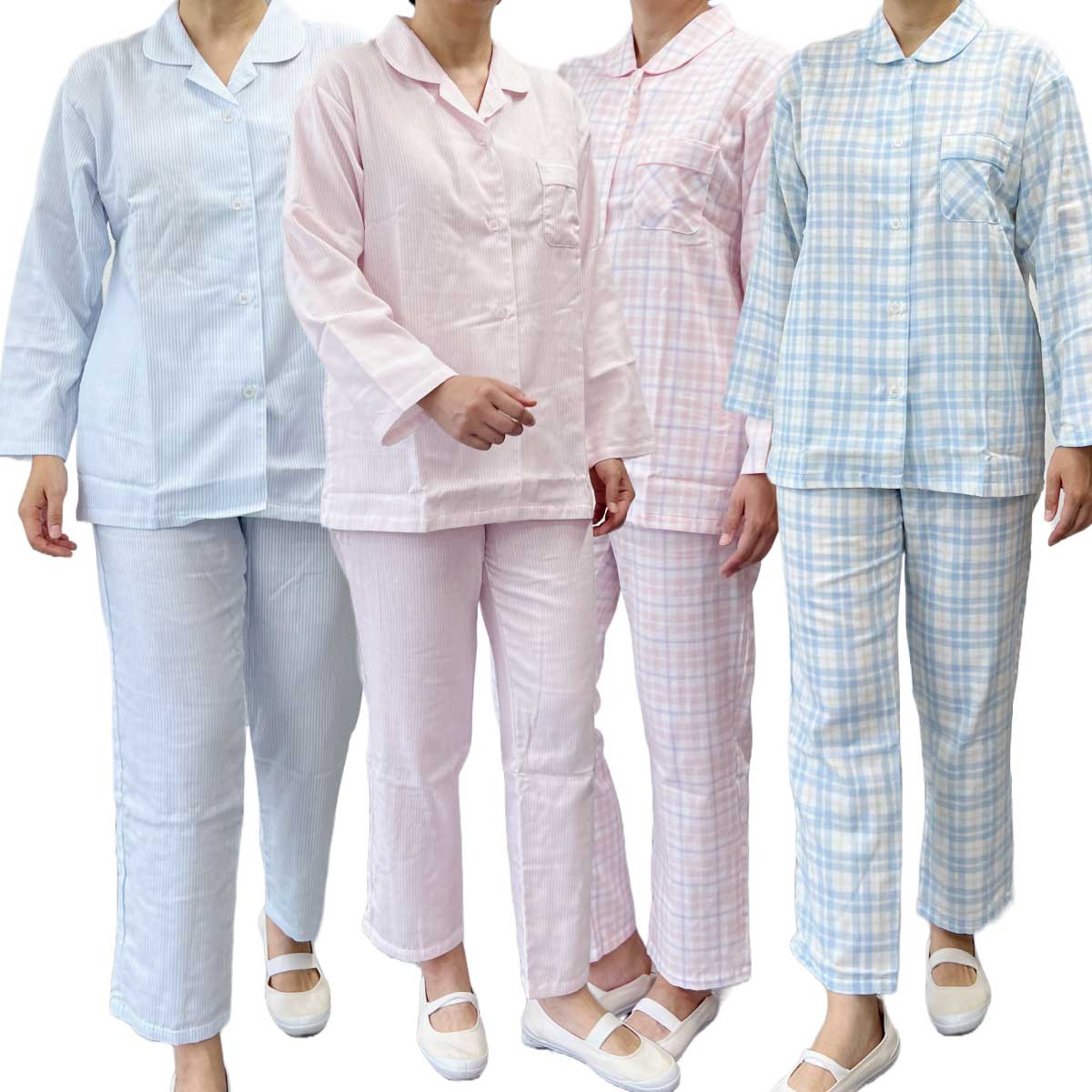 コットン100 大きめ パジャマ 播州織り 前あき 長袖 パジャマ 入院 国産 おしゃれ かわいい 母の日 敬老の日 おばあちゃん 誕生日 クリスマスプレゼント 入所 介護用のパジャマ