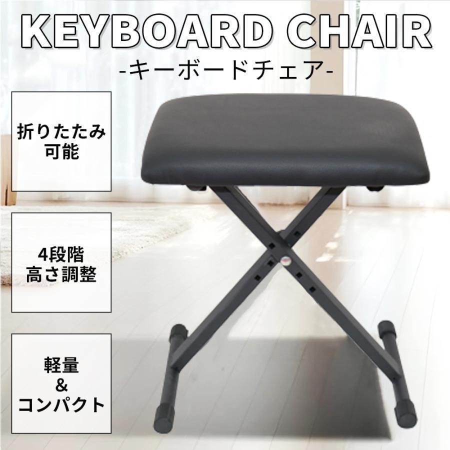 キーボードチェア ピアノ 椅子 折りたたみ 高さ調節 キーボードベンチ キーボードイス 折り畳み 4段階 ハイスツール クッション 合皮