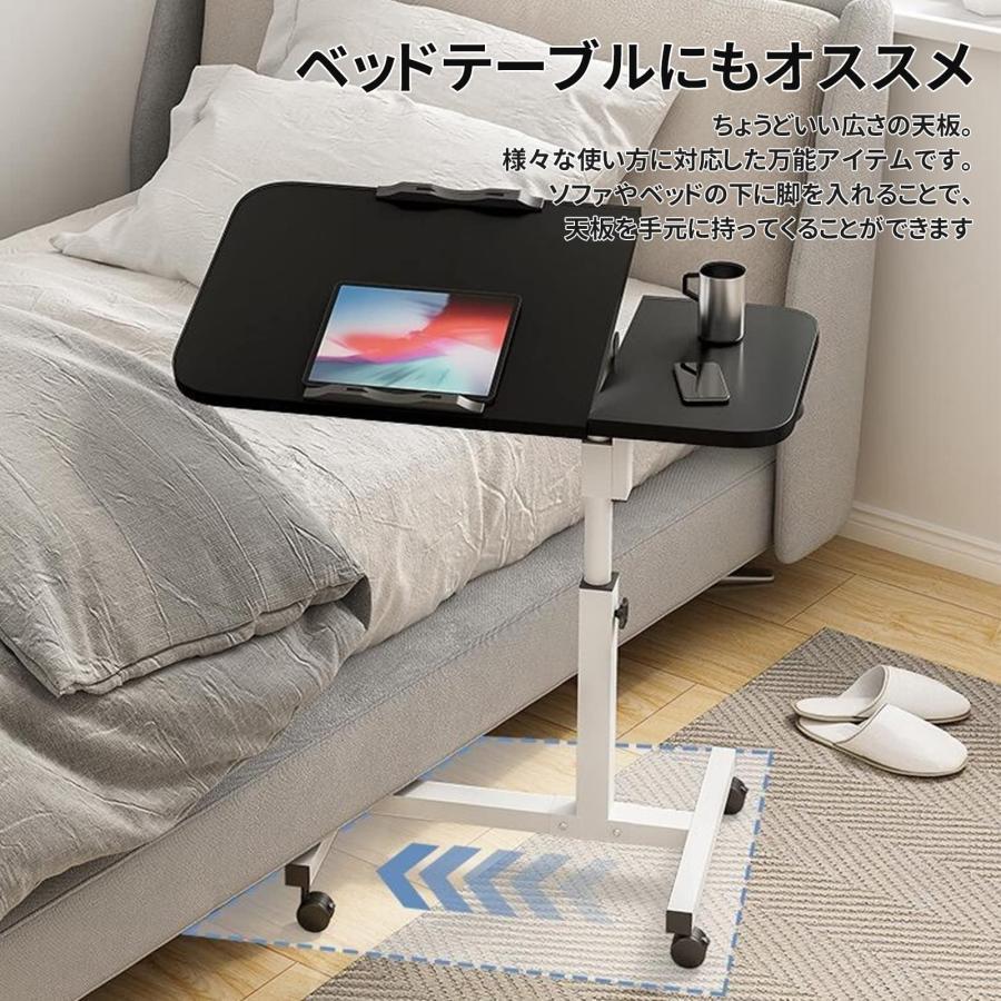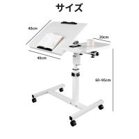 サイドテーブル 昇降式 パソコンデスク 高さ60-95cm キャスター付き 幅60 角度調整 無段階高さ調節 オフィス 移動式 勉強机 仕事