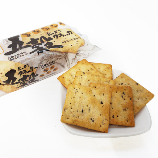 五穀(小麦全粒粉・玄米・黒胡麻・きび・あわ)をたっぷり10%練りこみ、穀物の香ばしさが特徴のクラッカー。